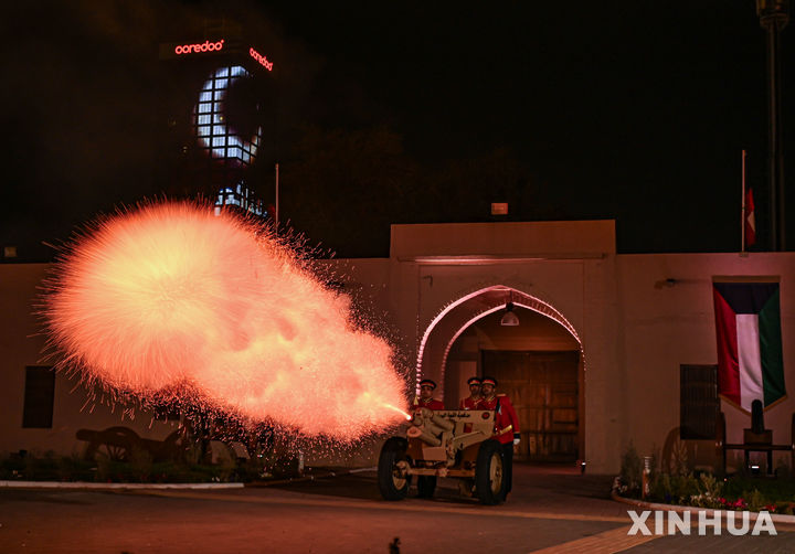 [쿠웨이트시티=신화/뉴시스] 지난달 28일(현지 시간) 쿠웨이트 쿠웨이트시티의 나이프 궁전에서 라마단 금식월을 공식 선포하는 포를 발사하고 있다. 쿠웨이트는 2025년 라마단 금식월이 3월 1일 시작된다고 공식 발표했다. 2025.03.01.