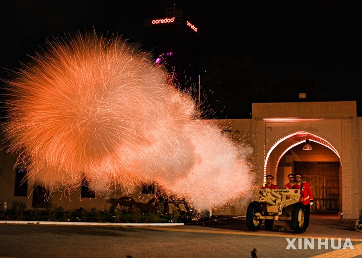 [쿠웨이트시티=신화/뉴시스] 지난달 28일(현지 시간) 쿠웨이트 쿠웨이트시티의 나이프 궁전에서 라마단 금식월을 공식 선포하는 포를 발사하고 있다. 쿠웨이트는 2025년 라마단 금식월이 3월 1일 시작된다고 공식 발표했다. 2025.03.01.