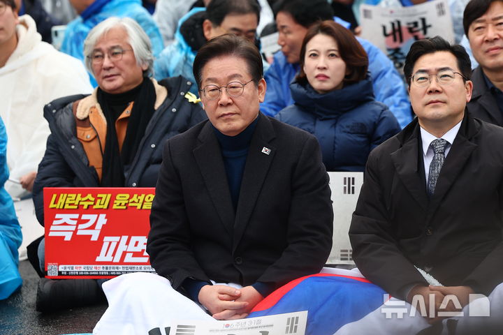 [서울=뉴시스] 김근수 기자 = 이재명 더불어민주당 대표가 1일 서울 종로구 안국역 인근에서 열린 3.1절 야5당 공동 내란종식 및 민주헌정수호를 위한 윤석열 파면 촉구 범국민대회에 참석해 있다. 2025.03.01. [email protected]