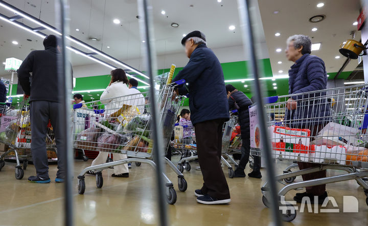 [서울=뉴시스] 황준선 기자 = 2일 서울 시내 한 대형마트에서 시민들이 장을 보고 있다.