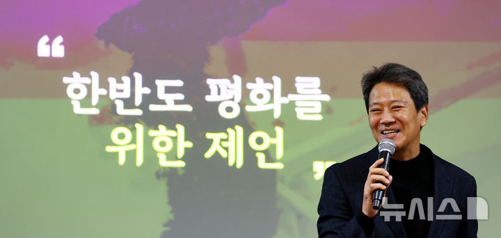 [서울=뉴시스] 박주성 기자 = 임종석 전 대통령 비서실장이 4일 오후 서울 중구 공간하제에서 ‘한반도 평화를 위한 제언‘이라는 주제로 희망래일 대륙학교 공개특강을 하고 있다. 2025.03.04. [email protected]