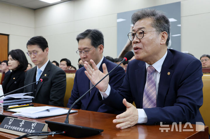 [서울=뉴시스] 조성우 기자 = 김용빈(오른쪽) 중앙선거관리위원회 사무총장이 5일 오전 서울 여의도 국회에서 열린 과학기술정보방송통신위원회 전체회의에서 의원 질의에 답변하고 있다. 2025.03.05. [email protected]