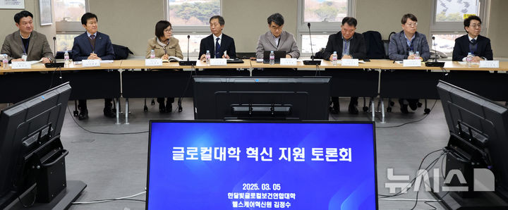 [세종=뉴시스] 강종민 기자 = 5일 세종시 정부세종청사에서 열린 2025년 제2차 글로컬대학 혁신지원 토론회에서 참석자들이 오석환 교육부 차관의 발언을 듣고 있다. 2025.03.05. [email protected]