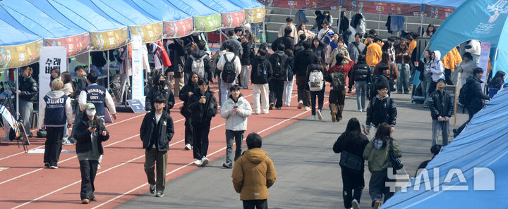 [전주=뉴시스] 김얼 기자 = 2025학년도 새 학기가 이어지고 있는 6일 전북 전주시 전북대학교 대운동장에서 학생들이 동아리모집 활동을 하고 있다. 2025.03.06. [email protected]