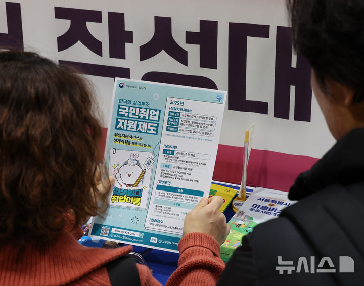 [서울=뉴시스] 김금보 기자 = 6일 서울 중구 서울시청 다목적홀에서 열린 '서울시 4050 중장년 취업박람회'에서 구직자들이 취업 모집공고를 살펴보고 있다. 2025.03.06. [email protected]