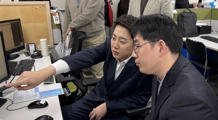 [서울=뉴시스] 조성봉 기자= 이준석 개혁신당 의원이 6일 서울 강남구 갤럭시아머니트리를 방문해 모바일 금융 플랫폼 및 디지털 자산 관련 현장을 점검하고 있다. (사진=이준석 의원실 제공) 2025.03.06. [email protected] *재판매 및 DB 금지