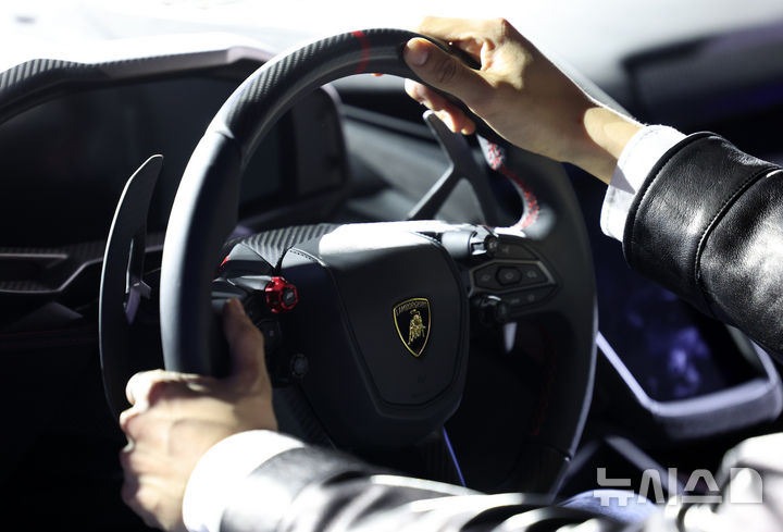 [서울=뉴시스] 김선웅 기자 = 6일 서울 광진구 파이팩토리 스튜디오에서 열린 람보르기니 신차 공개 행사에서 플러그인 하이브리드 슈퍼 스포츠카 '테메라리오(Temerario)'가 공개되고 있다. 2025.03.06. [email protected]