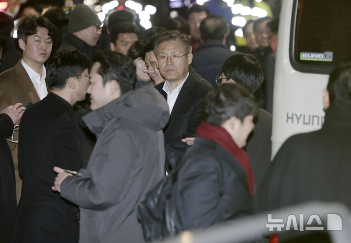 [서울=뉴시스] 최동준 기자 = 법원이 윤석열 대통령의 구속취소 청구를 인용한 7일 서울 용산구 한남동 대통령 관저 앞에서 정호성 대통령비서실 시민사회3비서관이 대기하고 있다. 2025.03.07. [email protected]
