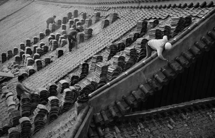 숭례문 복원시 기와 장인과 사진가로 처음 만나 인연을 이어오고 있는 국가무형유산 보유자 이근복 번와장(翻瓦匠)과 문화재 작업을 함께 해 오고 있다. 숭례문, 경복궁 계조당, 향원정, 진남관, 종묘, 경운궁 아재당 등등… 소중한 순간들이 원춘호의 손을 통해 역사의 기록되고 있다. 전시는 3월 23일까지 매주 금,토,일만 전시 관람이 가능하다. 사진은 여수 진남관 기와 해체_이주형 와공(2018). 2025.03.09. [email protected]