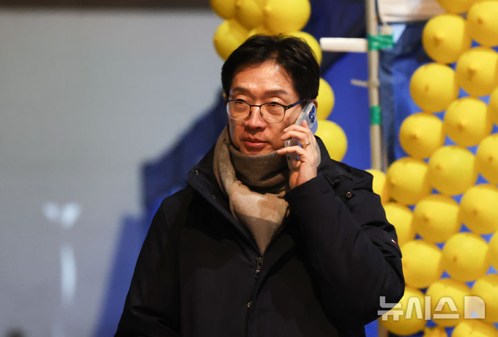 [서울=뉴시스] 김근수 기자 = 김경수 전 경남지사가 9일 저녁 서울 종로구 경복궁역 인근에서 윤석열 대통령 파면을 촉구하는 단식 농성에 앞서 전화통화를 하고 있다. 2025.03.09. [email protected]