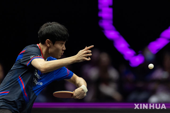 [충칭=신화/뉴시스] 조대성이 11일(현지 시간) 중국 충칭에서 열린 월드테이블테니스(WTT) 챔피언스 충칭 2025 남자 단식 32강에서 린가오위안(중국)과 경기하고 있다. 조대성이 0-3(5-11 6-11 3-11)으로 완패해 16강에 오르지 못했다. 2025.03.12.