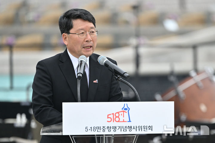 [광주=뉴시스] 이영주 기자 = 오병윤 제45주년 5·18민중항쟁기념행사위원회 상임위원장이 12일 오전 광주 북구 운정동 국립5·18민주묘지에서 열린 제45주년 5·18민중항쟁기념행사위원회 출범식에 참여해 인사말하고 있다. 2025.03.12. [email protected]