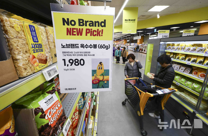 [서울=뉴시스] 김근수 기자 = 12일 서울 시내 한 대형마트에 자체 브랜드 제품(PB)과자가 판매되고 있다.