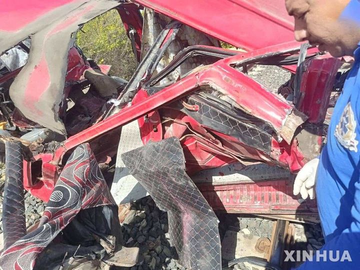 [이스마일리아=신화/뉴시스] 13일(현지 시간) 이집트 이스마일리아에서 발생한 열차와 미니버스 충돌 현장에서 한 남성이 작업하고 있다. 현지 경찰은 이 사고로 최소 8명이 숨지고 12명이 부상했다고 밝혔다. 2025.03.14.
