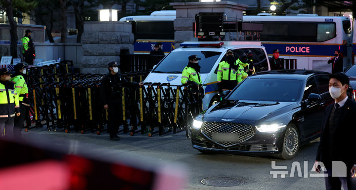 탄핵심판선고일 발표 임박, 경호속에 헌재 나서는 재판관 차량
