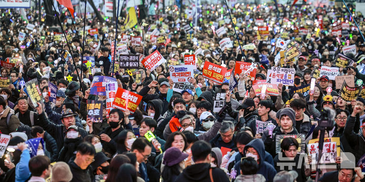 구호 외치는 윤석열즉각퇴진 사회대개혁 15차 범시민대행진 참가자들
