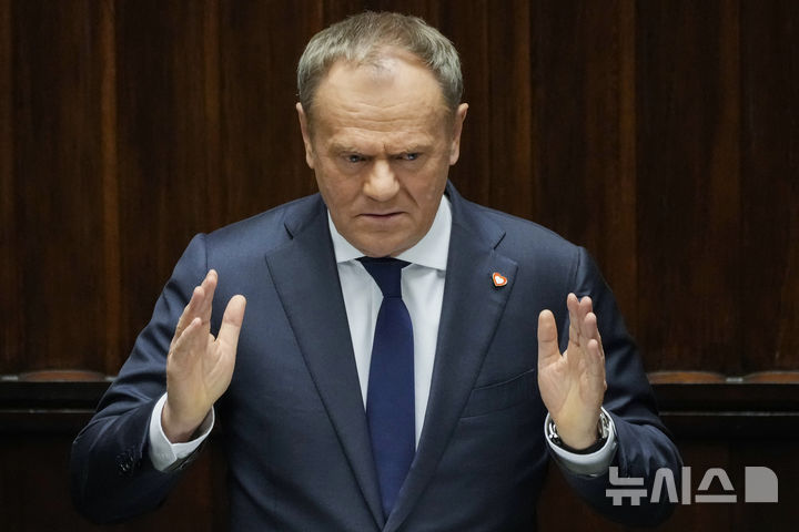 [바르샤바(폴란드)=AP/뉴시스]도날드 투스크 폴란드 총리가 지난 7일 폴란드 바르샤바의 하원에서 연설하고 있다. 폴란드와 리쿠아니아, 라트비아, 에스토니아 등 발트 3국은 18일 러시아가 북대서양조약기구(나토)의 최전선 국가들에 위협을 가함에 따라 대인지뢰를 금지하는 국제협약에서 탈퇴하고자 한다고 밝혔다. 2025.03.18.