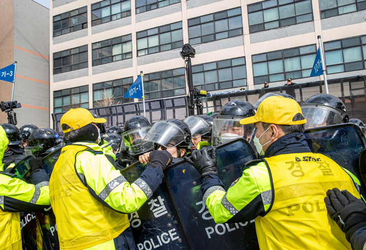 '탄핵 선고 대비' 기동대 합동 연합훈련하는 경찰