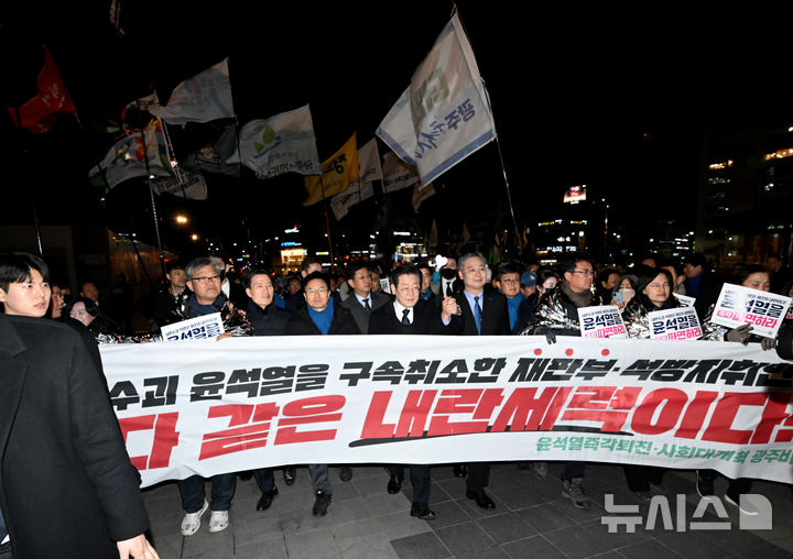 尹구속 최소 재판부 항의 행진하는 이재명 대표