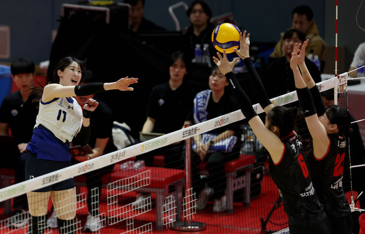 [서울=뉴시스] 김진아 기자 = 18일 광주 페퍼스타디움에서 열린 2024-25 V리그 여자부 현대건설과 페퍼저축은행의 경기, 현대건설 고예림이 공격하고 있다. (사진=현대건설 배구단 제공) 2025.03.18. [email protected] *재판매 및 DB 금지