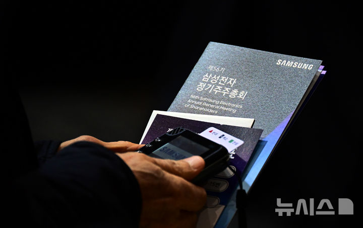 [수원=뉴시스] 김종택 기자 = 19일 경기도 수원시 영통구 수원컨벤션센터에서 삼성전자 제56기 정기 주주총회가 진행되고 있다. (공동취재) 2025.03.19. [email protected]