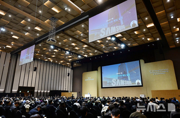 [수원=뉴시스] 김종택 기자 = 19일 경기도 수원시 영통구 수원컨벤션센터에서 삼성전자 제56기 정기 주주총회가 진행되고 있다. (공동취재) 2025.03.19. [email protected]