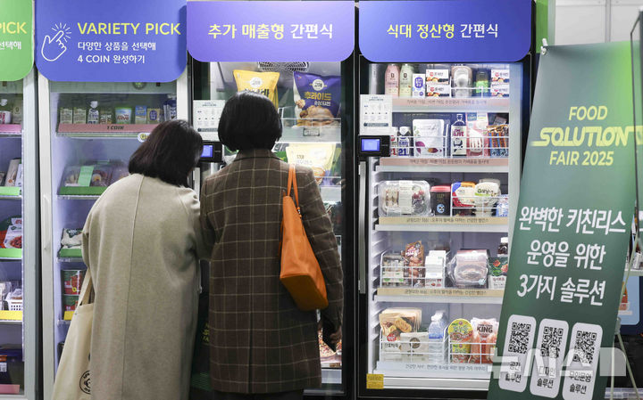 [서울=뉴시스] 김근수 기자 = 19일 서울 서초구 aT센터에서 열린 2025 CJ프레시웨이 푸드 솔루션 박람회에서 관람객들이 제품을 살펴보고 있다. 2025.03.19. [email protected]