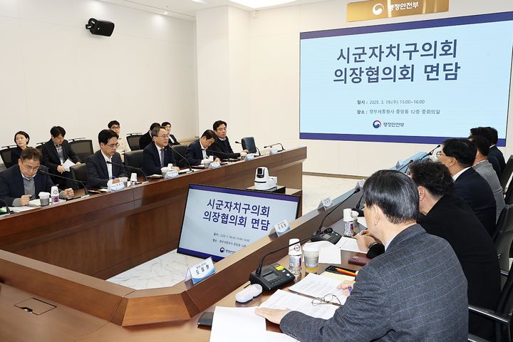 [서울=뉴시스] 고기동 행정안전부 장관 직무대행이 19일 오후 세종시 정부세종청사에서 열린 시군자치구의회의장협의회 임원진과의 간담회에서 인사말을 하고 있다. (사진=행정안전부 제공) 2025.03.19. [email protected] *재판매 및 DB 금지