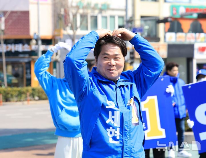 [천안·아산=뉴시스] 박우경 기자 =4.2 충남 아산시장 재보궐선거 공식 선거운동 첫날 더불어민주당 오세현 아산시장 후보가 선거 음악에 맞춰 안무를 하고 있다. 2025.3.20 [email protected]