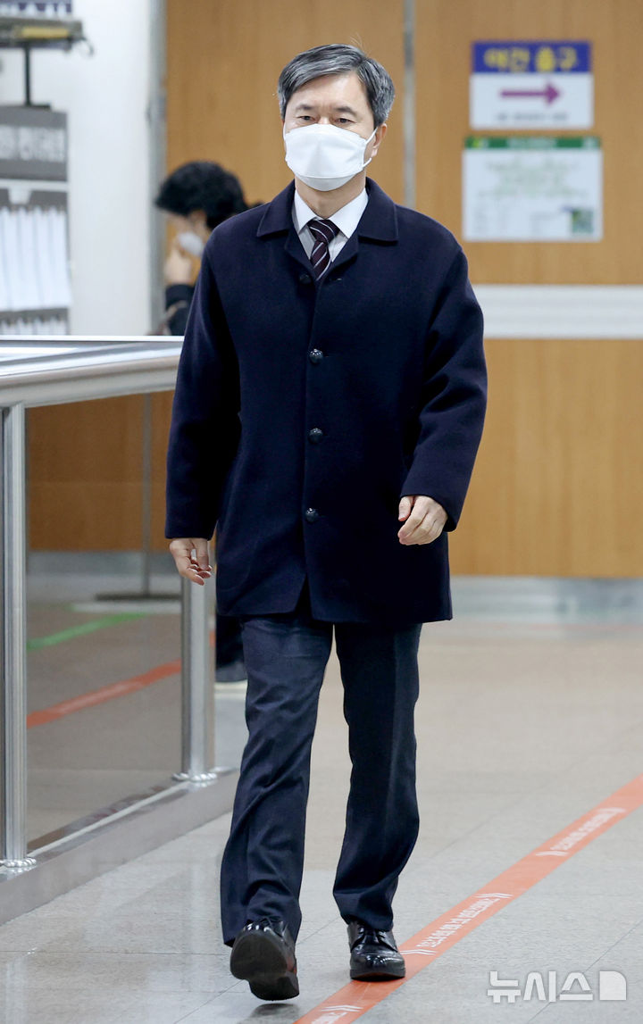 [서울=뉴시스] 김진아 기자 = 12·3 비상계엄과 관련 국회 외곽 봉쇄, 체포조 편성 등의 혐의로 기소된 목현태 전 국회경비대장이 20일 서울 서초구 서울중앙지방법원에서 열린 1심 첫 공판에 출석하고 있다. 2025.03.20. [email protected]