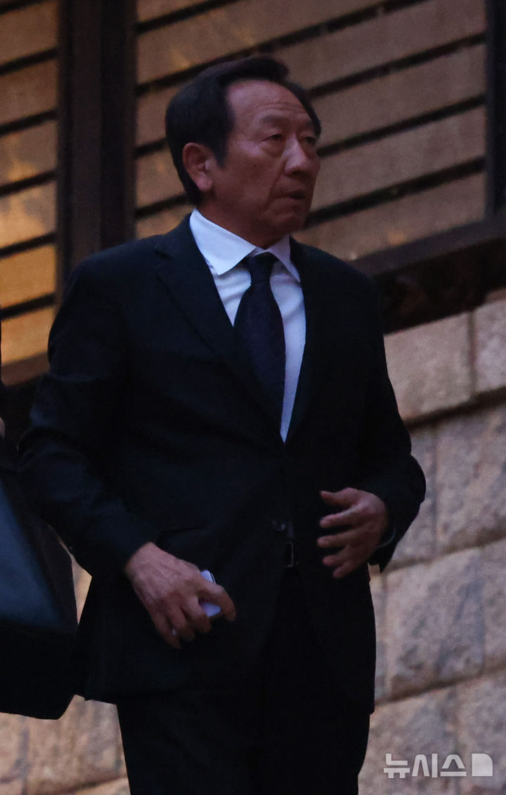 [서울=뉴시스] 황준선 기자 = 정몽석 현대종합금속 회장 20일 오후 고 정주영 현대그룹 명예회장의 24주기 제사를 치르기 위해 서울 종로구 청운동 옛 정주영 명예회장의 자택으로 들어서고 있다. 2025.03.20. [email protected]