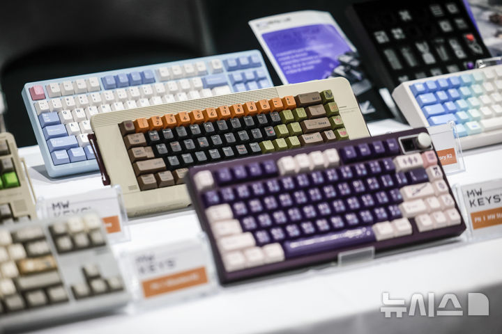 [서울=뉴시스] 정병혁 기자 = 21일 서울 강남구 세텍에서 열린 제2회 서울 기계식 키보드 박람회를 찾은 참관객들이 키보드와 키보드 용품을 살펴보고 있다. 2025.03.21. [email protected]