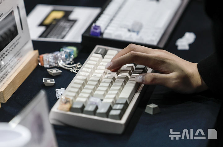 [서울=뉴시스] 정병혁 기자 = 21일 서울 강남구 세텍에서 열린 제2회 서울 기계식 키보드 박람회를 찾은 참관객들이 키보드와 키보드 용품을 살펴보고 있다. 2025.03.21. [email protected]