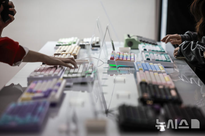 [서울=뉴시스] 정병혁 기자 = 21일 서울 강남구 세텍에서 열린 제2회 서울 기계식 키보드 박람회를 찾은 참관객들이 키보드와 키보드 용품을 살펴보고 있다. 2025.03.21. [email protected]