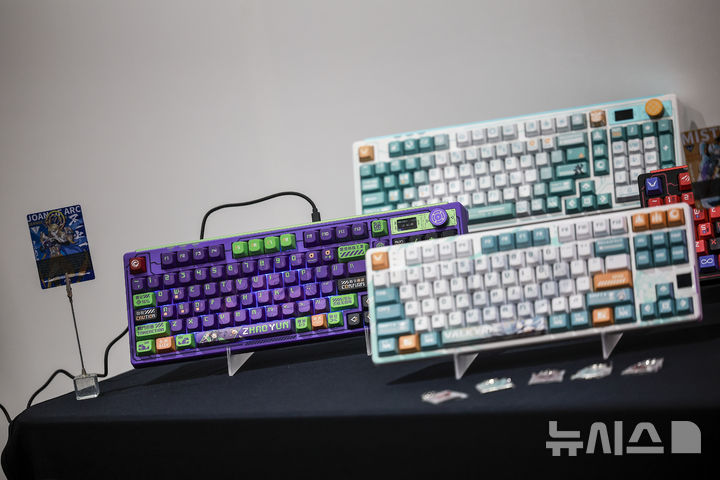 [서울=뉴시스] 정병혁 기자 = 21일 서울 강남구 세텍에서 열린 제2회 서울 기계식 키보드 박람회를 찾은 참관객들이 키보드와 키보드 용품을 살펴보고 있다. 2025.03.21. [email protected]