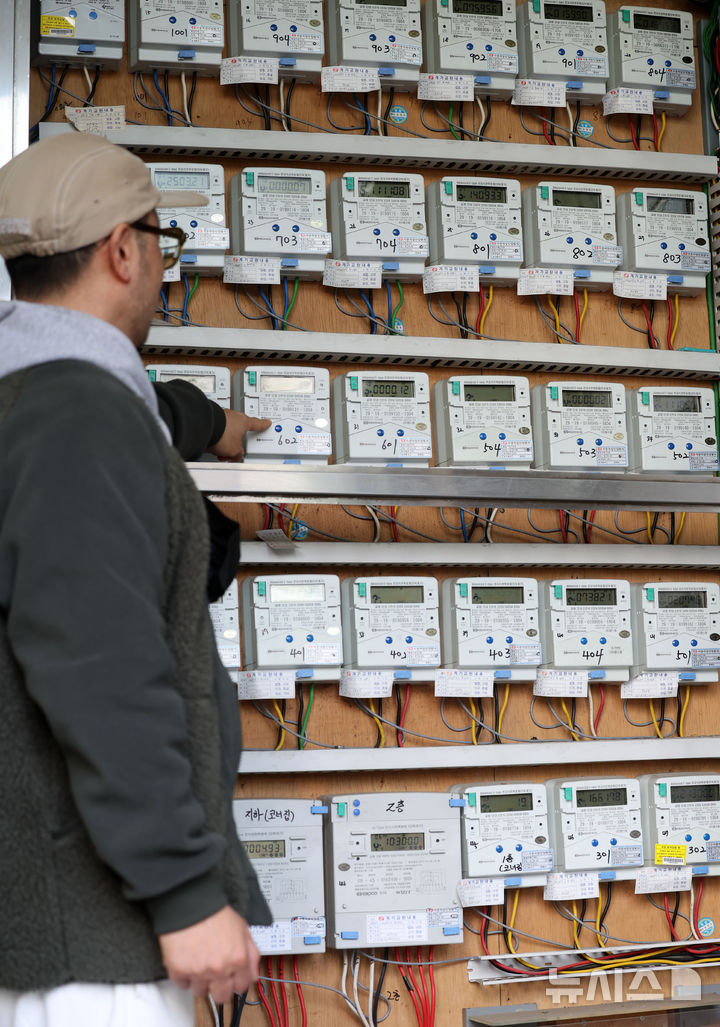[서울=뉴시스] 홍효식 기자 = 한국전력이 2분기에 적용할 연료비조정단가를 현재와 같은 ㎾h(킬로와트시)당 5원으로 유지한다고 밝힌 21일 서울 시내 한 오피스텔 전기 계량기 모습. 2025.03.21. [email protected]