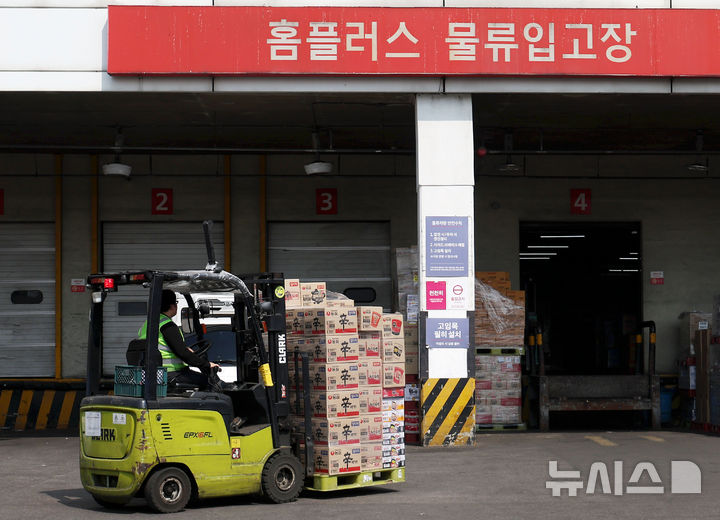 [서울=뉴시스] 홍효식 기자 = 홈플러스가 최근 농심과의 거래가 일시 중단됐던 것과 관련해 "합의가 완료돼 납품이 재개될 예정"이라고 밝힌 21일 서울 시내 한 홈플러스 물류입고장에서 농심 제품이 입고되고 있다. 2025.03.21. [email protected]