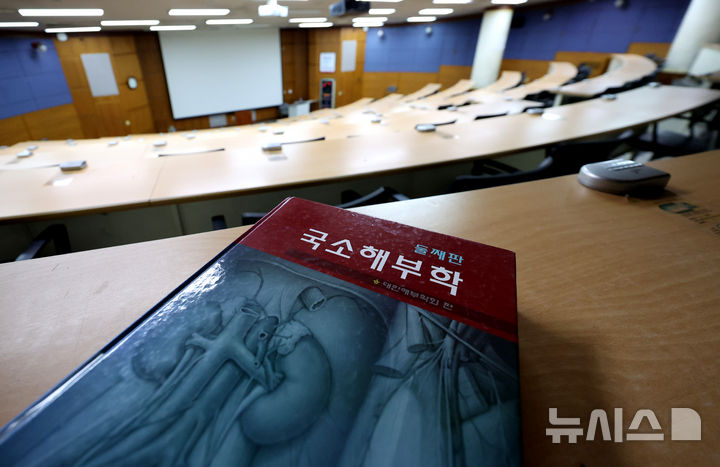 [대구=뉴시스] 이무열 기자 = 연세대·고려대·경북대 의대 1학기 등록 마감일인 21일 대구 중구 한 대학교 의과대학 강의실에 의학 서적만 덩그러니 놓여있다. 2025.03.21. [email protected]