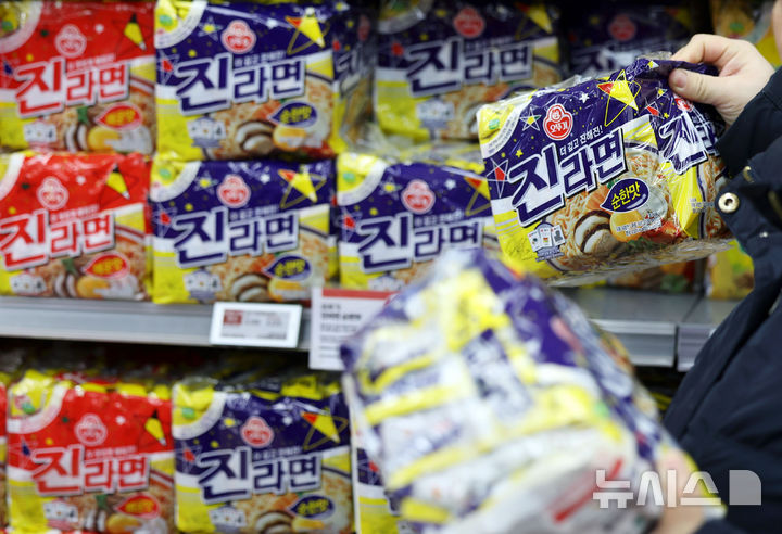 21일 서울 시내 한 대형마트에서 시민들이 오뚜기 진라면을 구매하고 있다. 2025.03.21. [email protected]