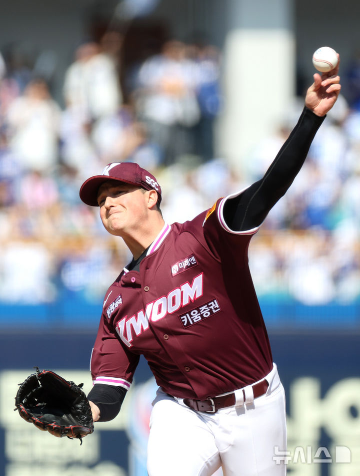 [대구=뉴시스] 이무열 기자 = 22일 대구 수성구 삼성라이온즈파크에서 열린 2025 신한 SOL 뱅크 KBO 리그 키움 히어로즈와 삼성 라이온즈의 경기, 1회말 키움 선발투수 로젠버그가 역투하고 있다. 2025.03.22. [email protected]