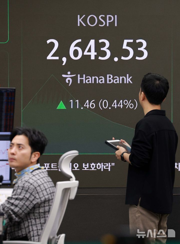 [서울=뉴시스] 고범준 기자 = 코스피가 전 거래일(2632.07)보다 20.97포인트(0.80%) 상승한 2653.04에 개장한 25일 오전 서울 중구 하나은행 딜링룸 전광판에 지수가 표시되고 있다.