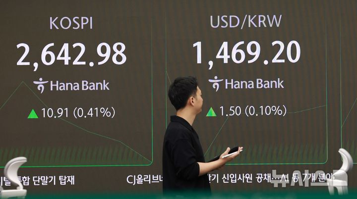 [서울=뉴시스] 고범준 기자 = 코스피가 전 거래일(2632.07)보다 20.97포인트(0.80%) 상승한 2653.04에 개장한 25일 오전 서울 중구 하나은행 딜링룸 전광판에 지수가 표시되고 있다.