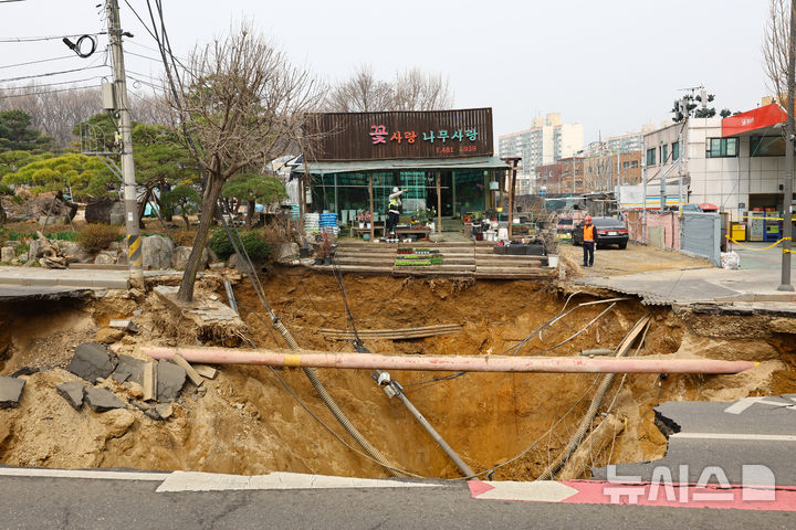 현재 싱크홀 아래에는 사고 당시 현장을 지나던 오토바이 운전자가 매몰돼 있는 것으로 알려졌다. 2025.03.25. [email protected]