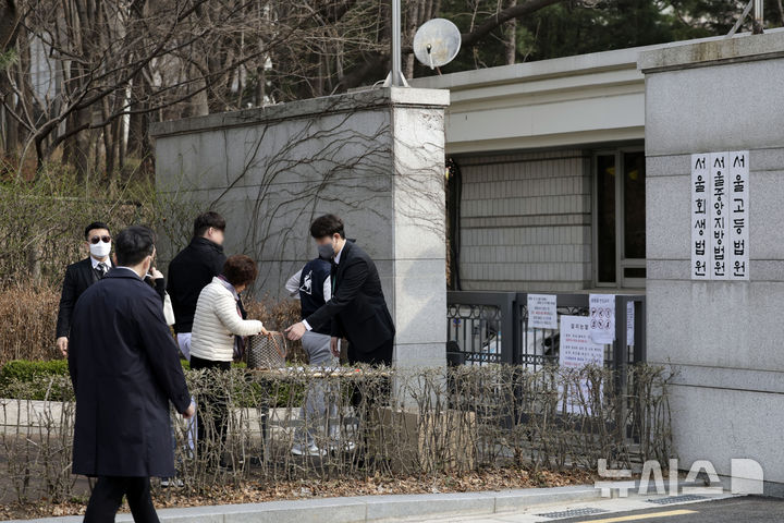 [서울=뉴시스] 최동준 기자 = 이재명 더불어민주당 대표 공직선거법 위반 항소심 선고를 하루 앞둔 25일 서울 서초구 서울중앙지방법원이 보안 강화를 위해 출입자 소지품 검사를 하고 있다. 2025.03.25. [email protected]