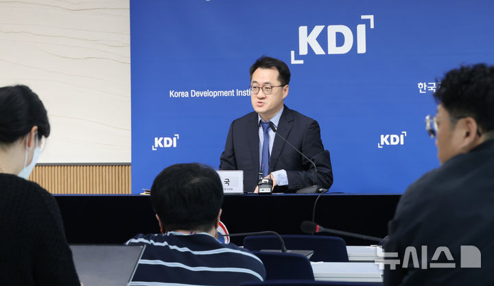 [세종=뉴시스] 강종민 기자 = 이진국 KDI 산업·시장정책연구부 선임연구위원이 25일 세종시 정부세종청사에서 콘텐츠 산업의 성장 추이와 국가 경제에 미치는 영향, 기업의 성장 요인 등을 설명하고 있다. 2025.03.25. [email protected]