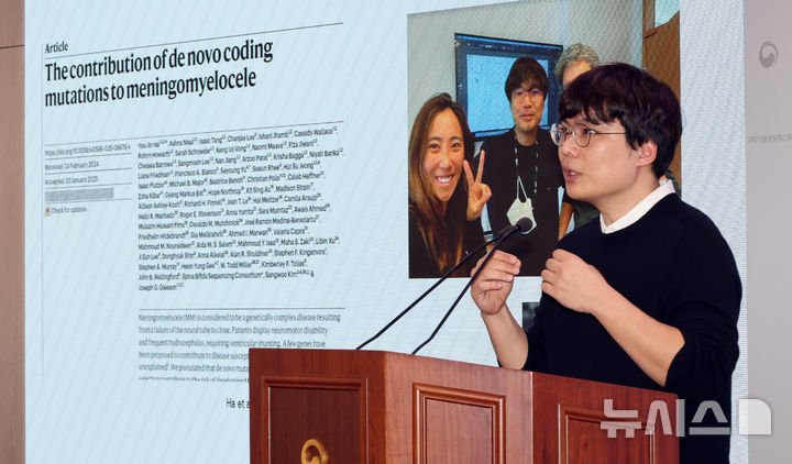 [세종=뉴시스] 강종민 기자 = 김상우 연세대 교수가 지난 25일 세종시 정부세종청사에서 세계 최초로 규명한 척추이분증의 원인에 대해 설명하고 있다. 2025.03.27. [email protected]