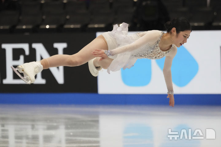 [보스턴=AP/뉴시스] 이해인이 26일(현지 시간) 미 매사추세츠주 보스턴의 TD가든에서 열린 2025 국제빙상경기연맹(ISU) 세계 피겨스케이팅 선수권대회 여자 싱글 쇼트프로그램 연기를 펼치고 있다. 이해인은 67.79점으로 7위를 기록했다. 2025.03.27.