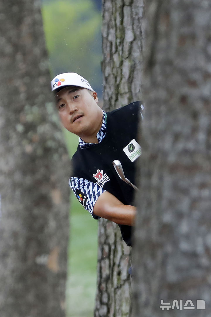 [휴스턴=AP/뉴시스] 이경훈이 27일(현지 시간) 미 텍사스주 ) 미국 텍사스주 휴스턴의 메모리얼 파크 골프 코스에서 열린 미국 프로골프(PGA) 투어 텍사스 칠드런스 휴스턴 오픈 첫날 8번 페어웨이 러프에서 나무 사이로 타구를 지켜보고 있다. 이경훈은 5오버파 75타로 첫날을 마쳤다. 2025.03.28.