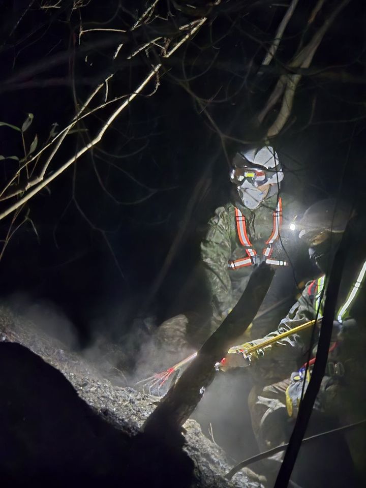 [서울=뉴시스] 정병혁 기자 = 경남 산청군 산불 현장에서 육군 39사단 장병이 야간 산불진화 지원작전을 펼치며 마지막 불씨정리에 최선을 다하고 있다.(사진=육군 제공) 2025.03.29. [email protected] *재판매 및 DB 금지