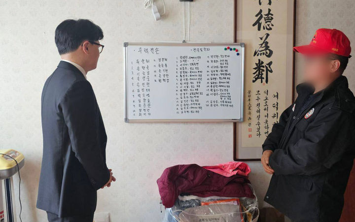 [서울=뉴시스] = 한동훈 전 국민의힘 대표가 29일 대형산불 피해를 입은 경북 의성 지역을 찾아 지역주민들을 위로하고 있다. (사진= 한동훈 전 대표측 제공) 2025.03.29. [email protected] *재판매 및 DB 금지